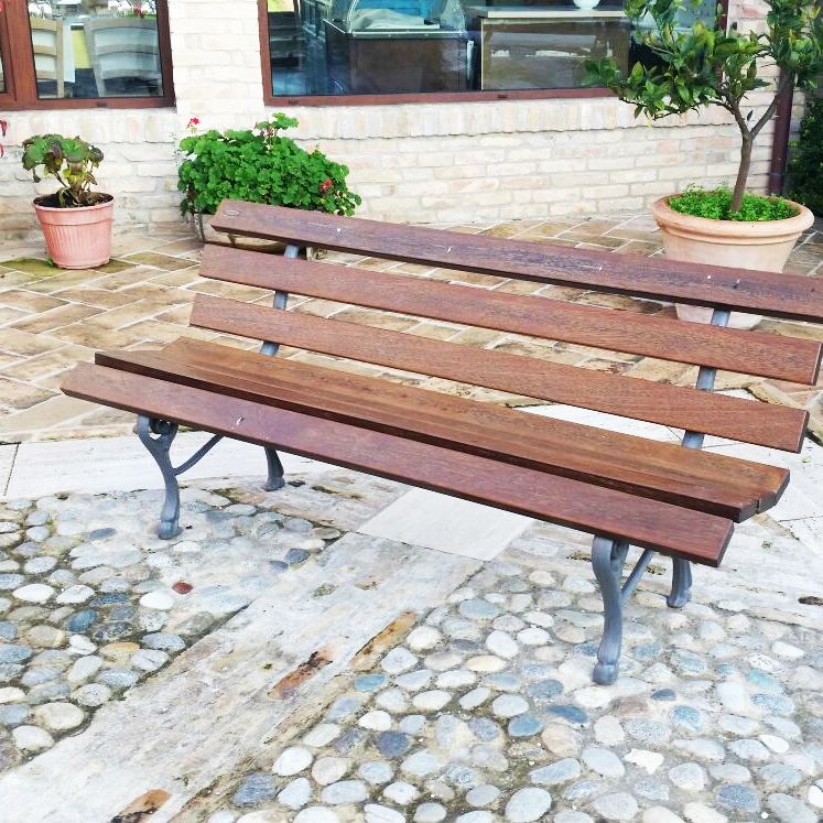 Poltrona con braccioli in ferro battuto, impilabile, zincata e verniciata antracite.