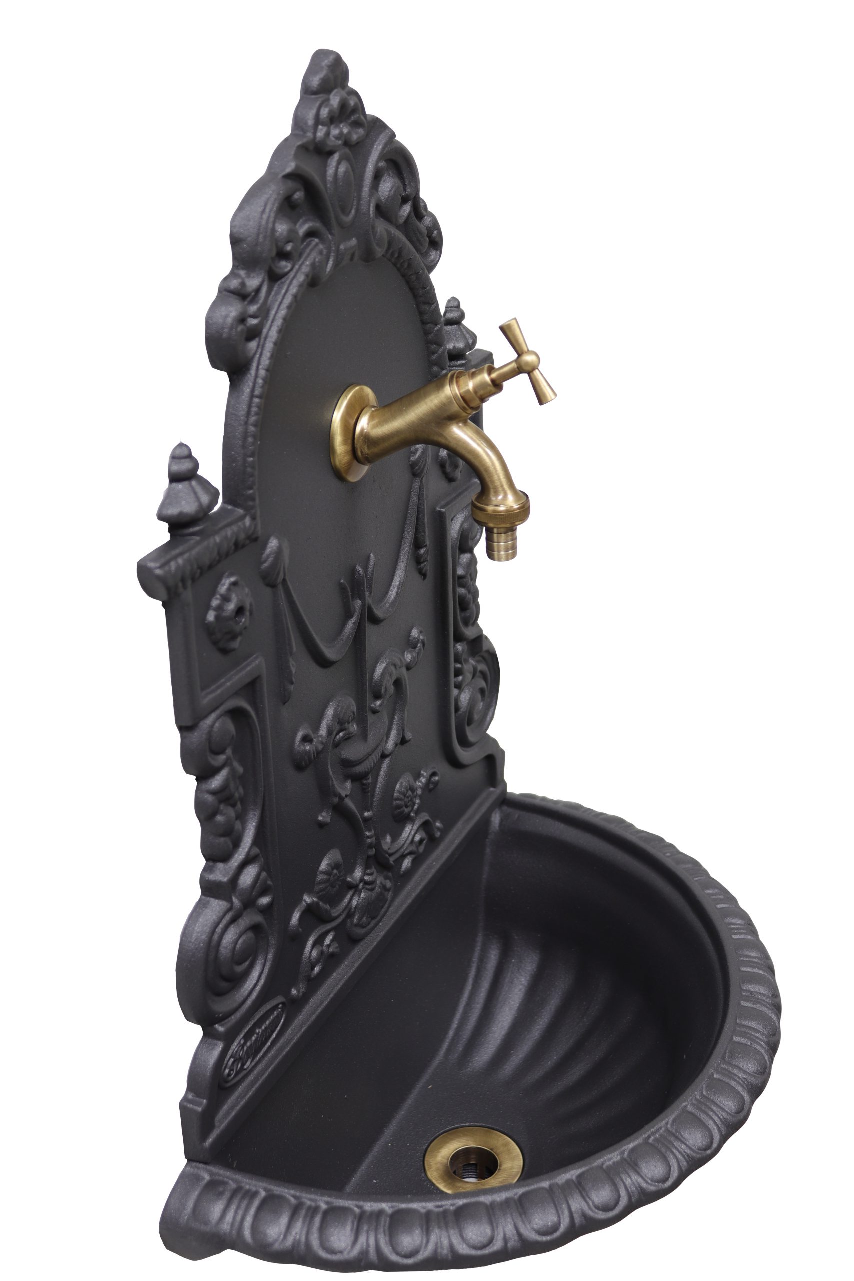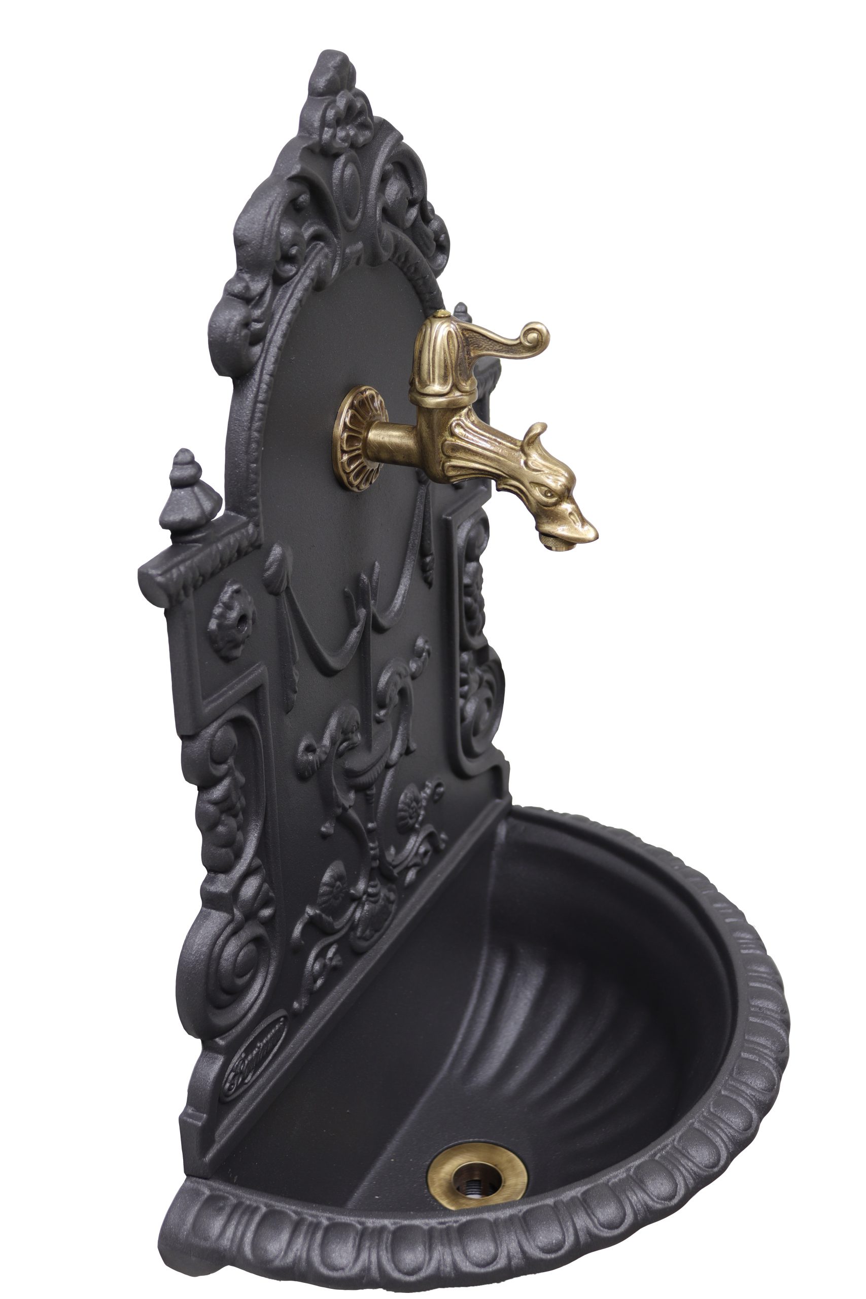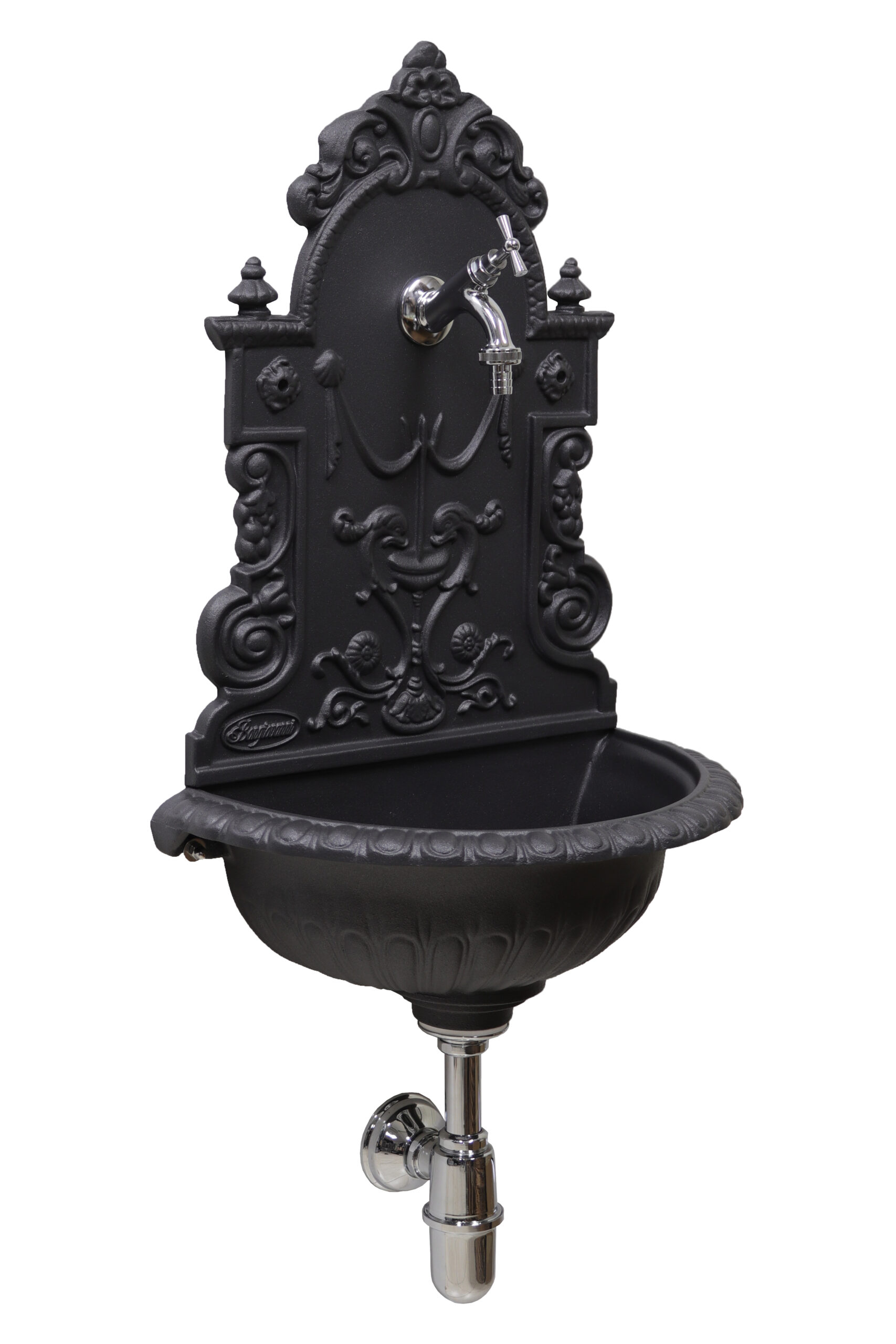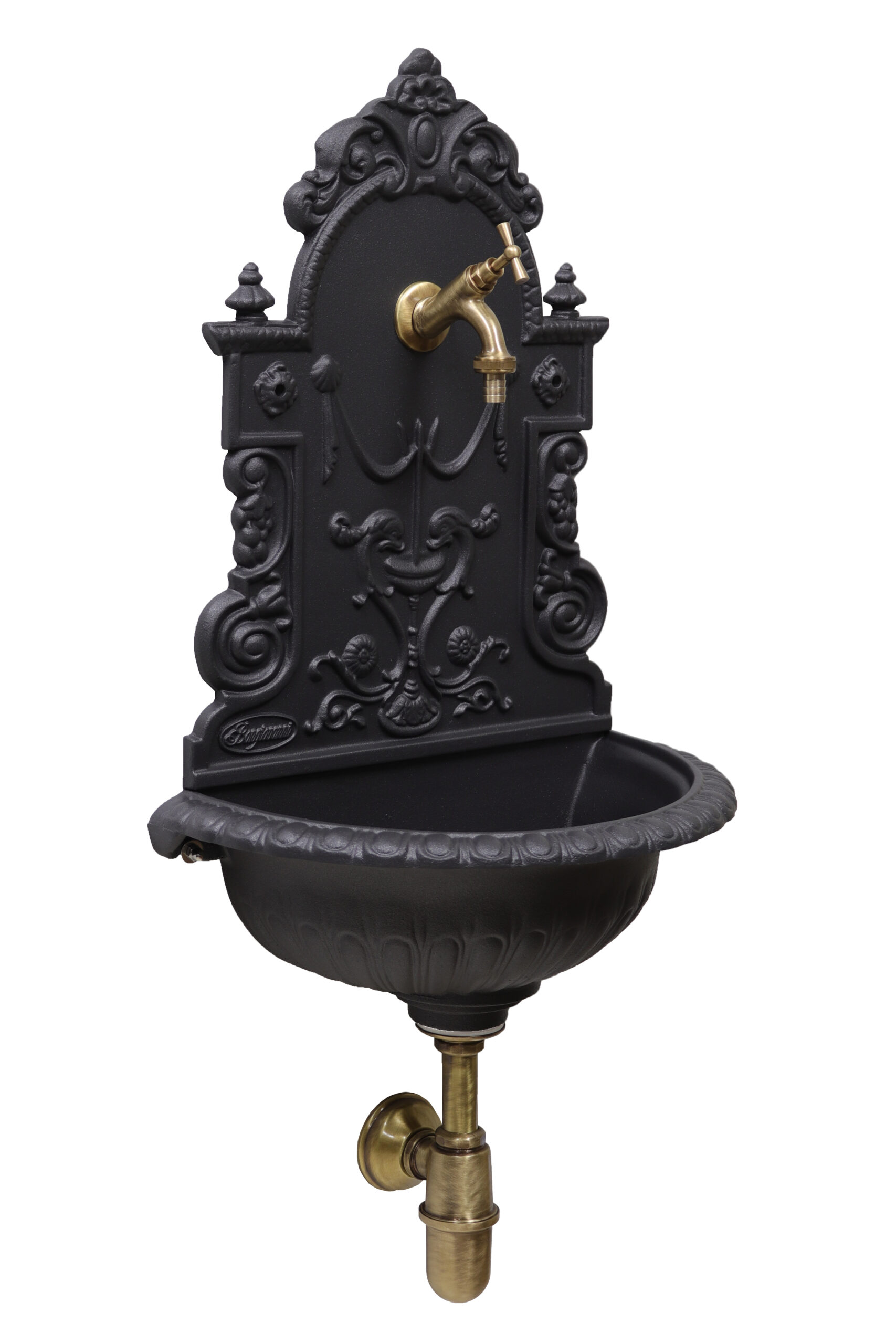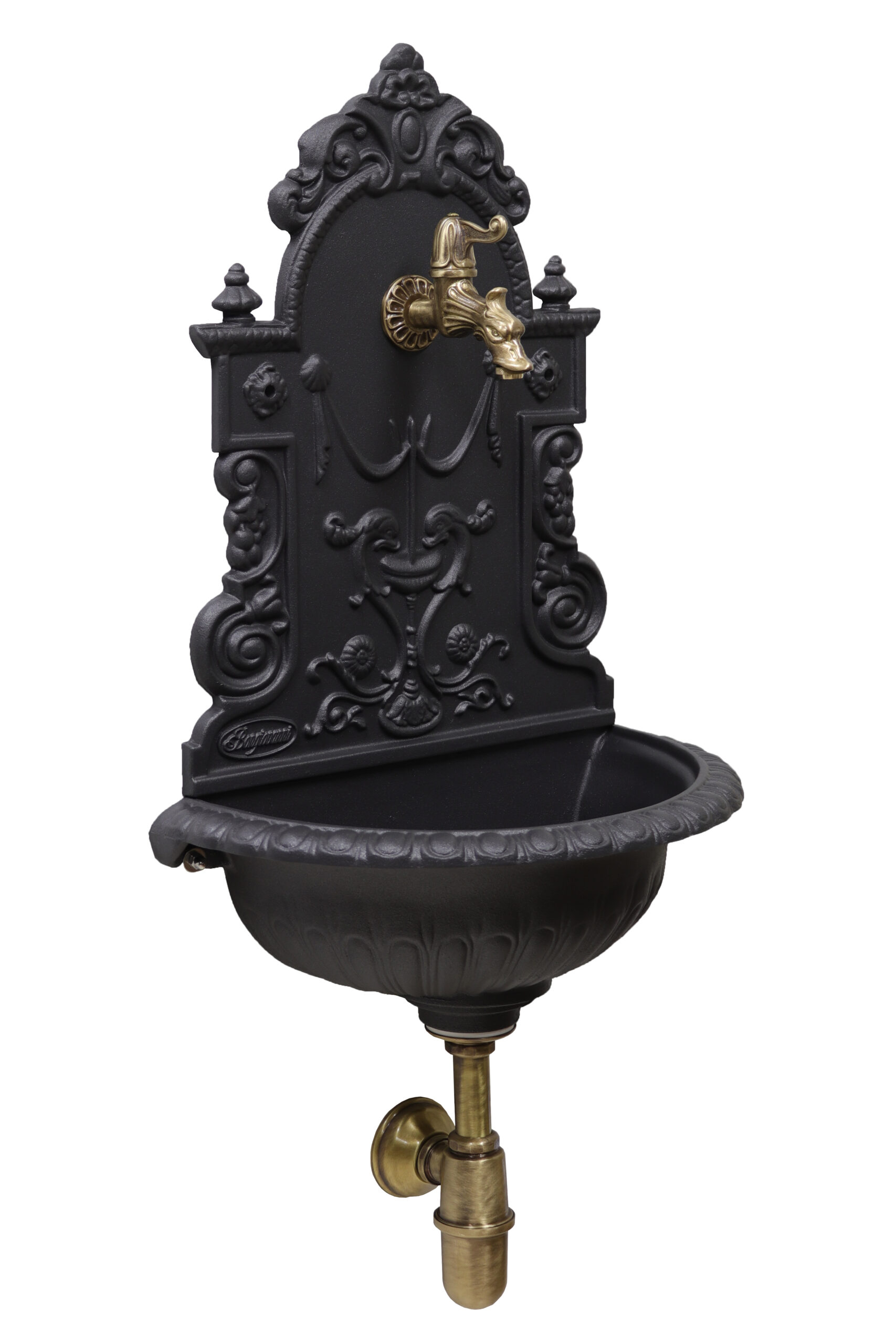 Fontana a muro Granada con rubinetto 147/C e sifone brunito