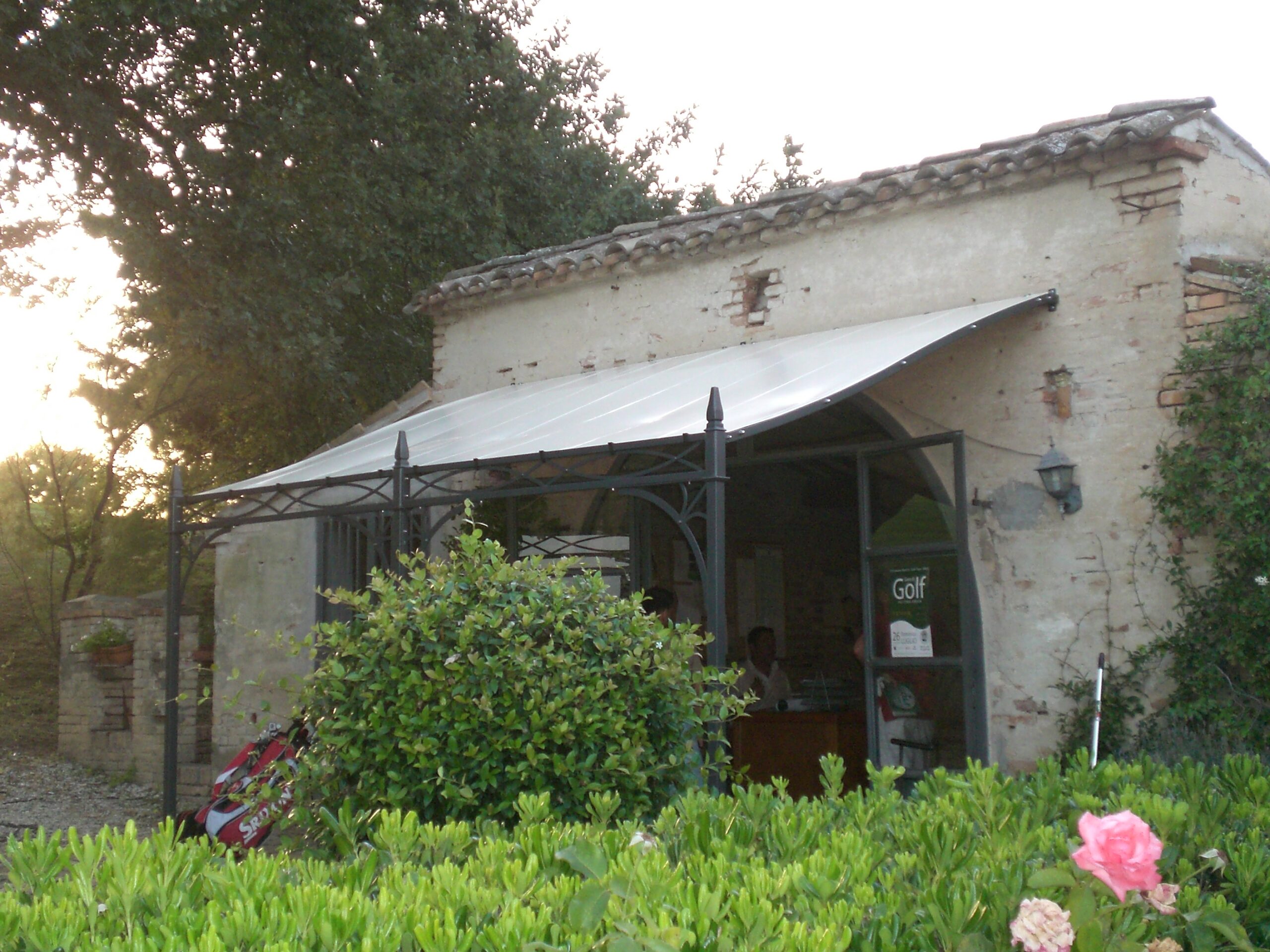 Per la struttura Agrigolf abbiamo realizzato due strutture in stile liberty: un gazebo autoportante ed una pergola addossata a parete modello Novecento.