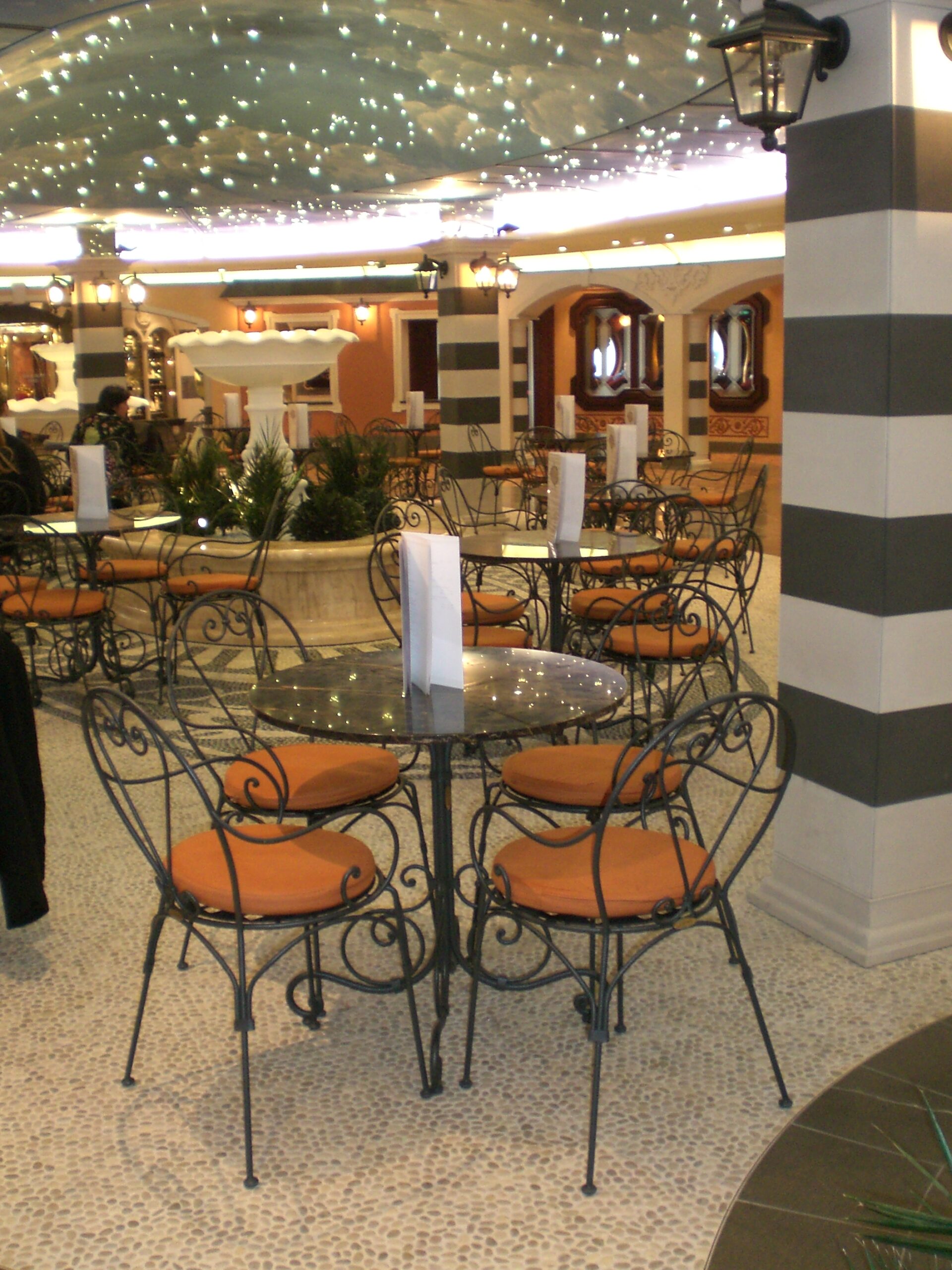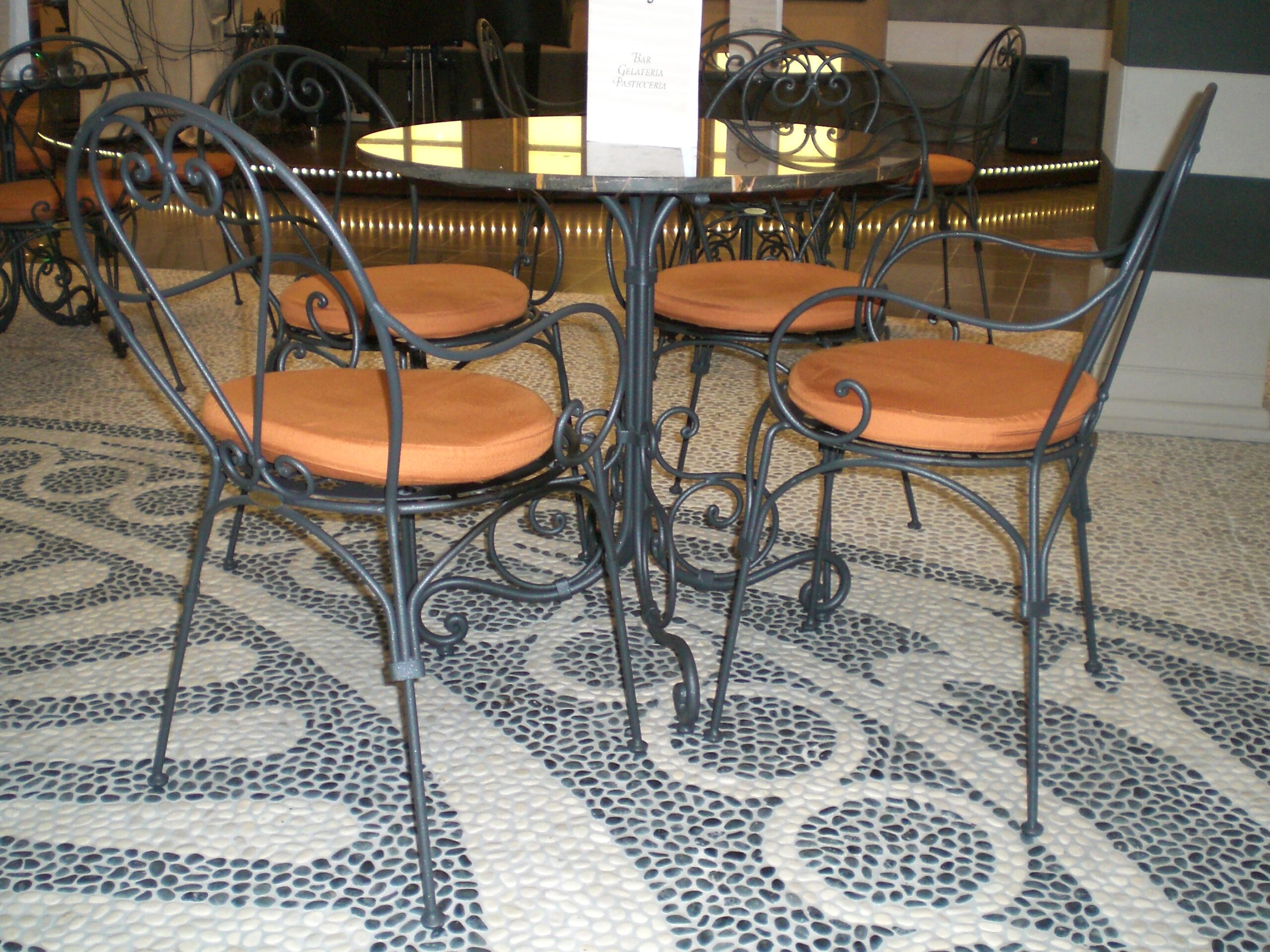 Abbiamo realizzato allestimento con tavoli e sedie in ferro battuto colore antracite.