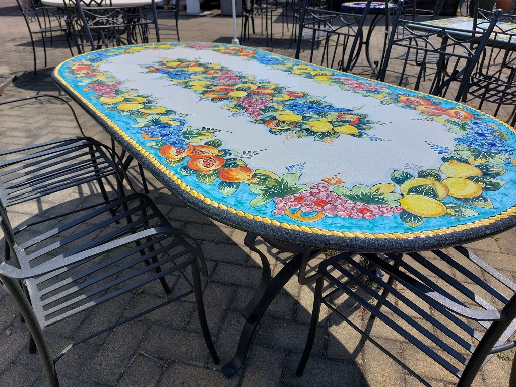 - N° 1 piano in pietra lavica dipinta a mano cm 200X100 ovale