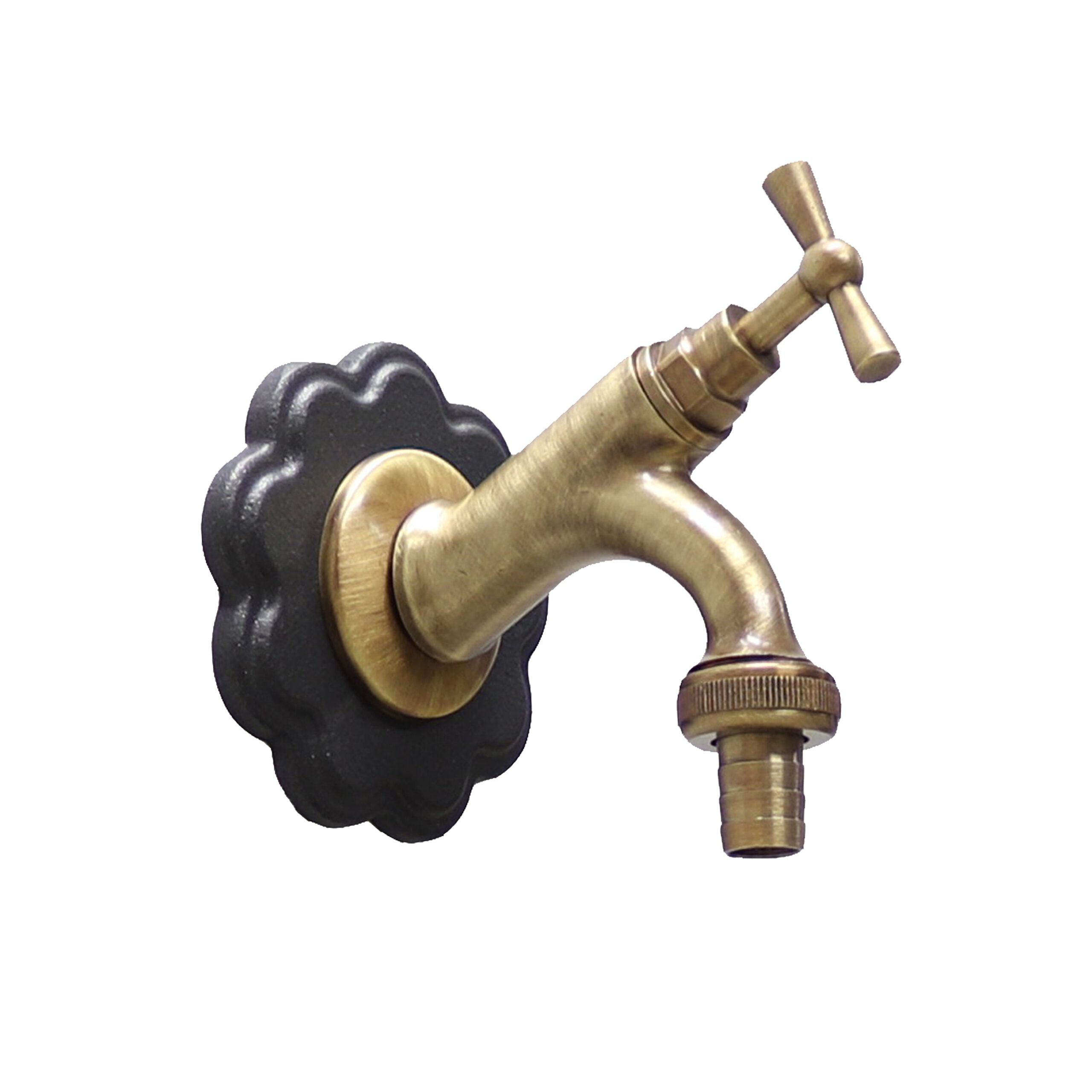 Fontana a muro mod. Conchiglia con rubinetto cod. 303 in ottone brunito con rosone mod. Margherita.