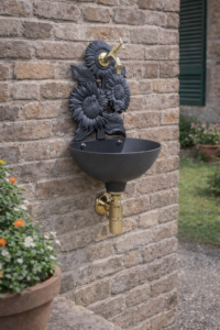 Fontana a muro mod. Girasole con rubinetto in ottone brunito mod. 303B