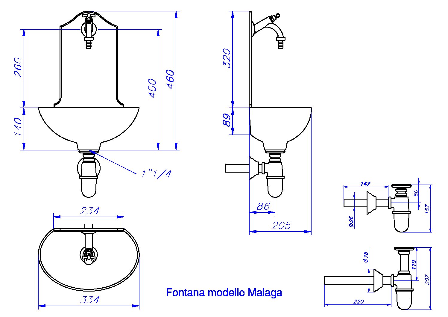 Fontana a muro Malaga con rubinetto 303/B e sifone