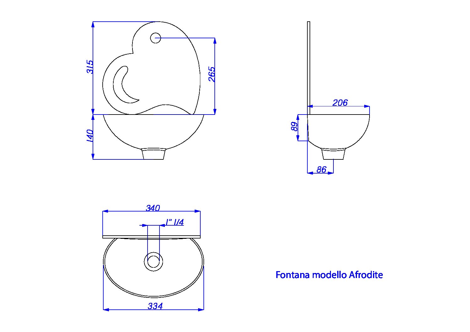 Fontana a muro mod. Afrodite senza rubinetto