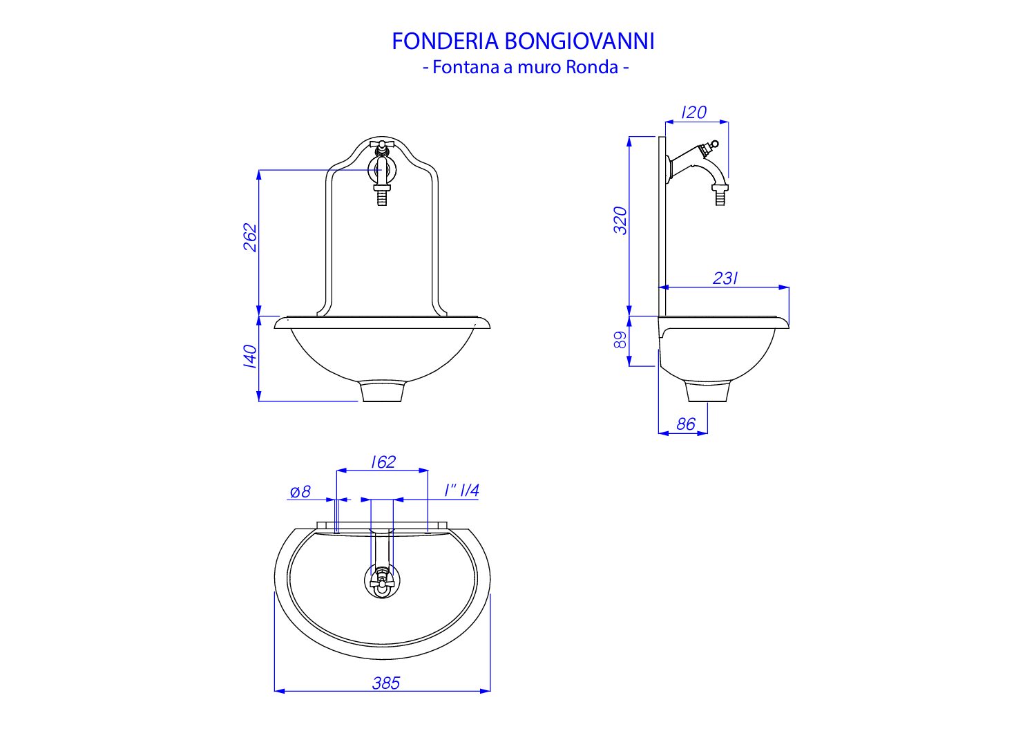 Fontana a muro mod. Ronda con rubinetto cod. 303 in ottone brunito