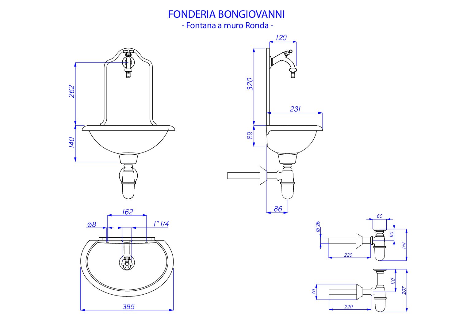 Fontana a muro Ronda con rubinetto 303/L e sifone