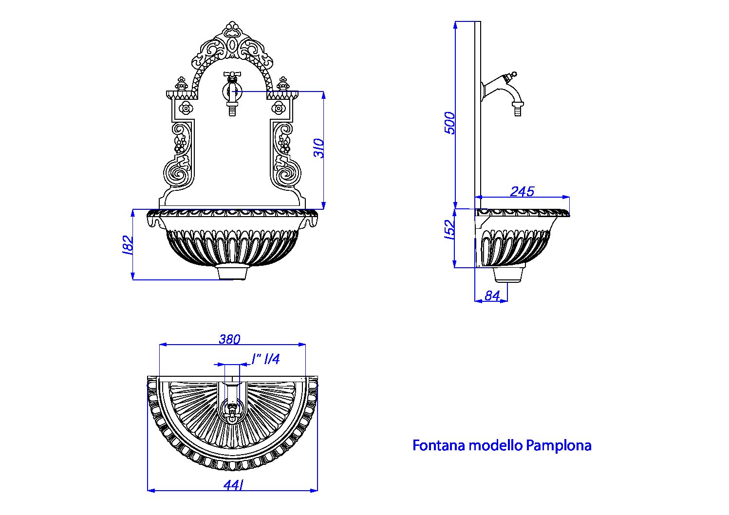 Fontana a muro Pamplona senza rubinetto