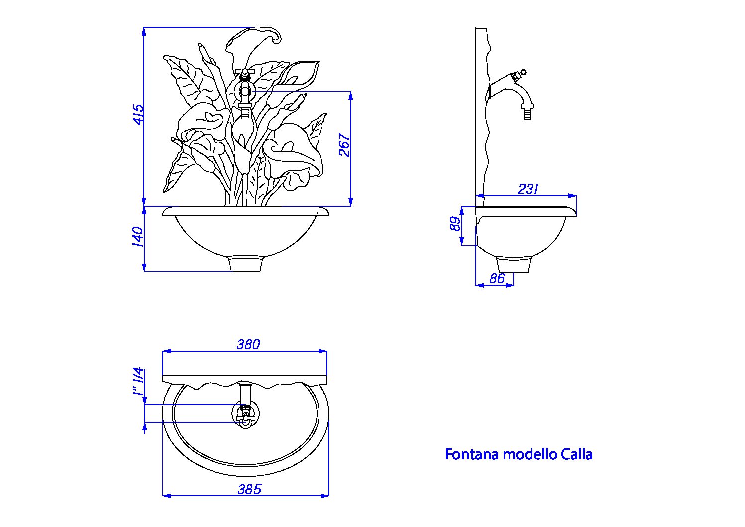 Fontana a muro mod. Calla con rubinetto cod. 303 in ottone cromato