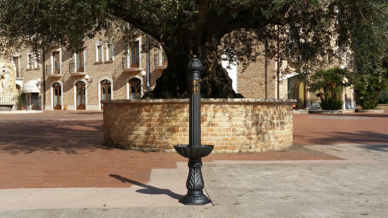 Fontana a colonna mod. Dea in ghisa verniciata a polvere epossidica color antracite con rubinetto in ottone brunito cod. 147/C, completa di vasca.