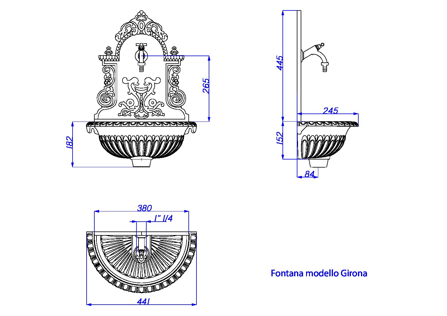 Fontana a muro mod. Girona con rubinetto cod. 303 in ottone cromato