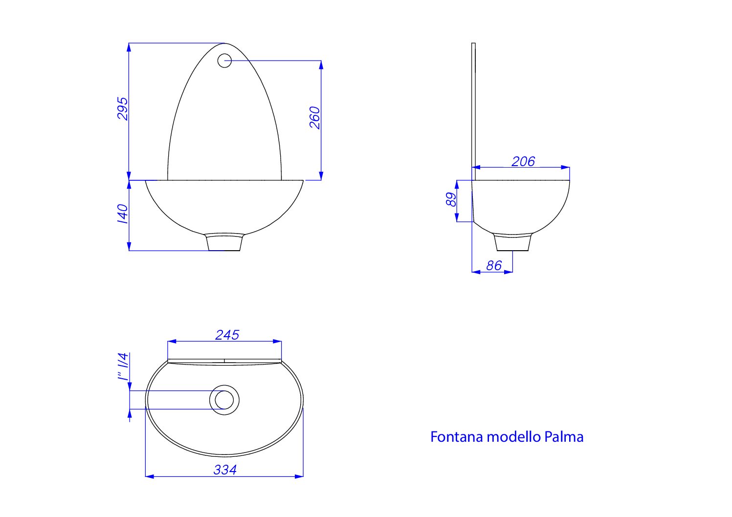 Fontana a muro mod. Palma senza rubinetto