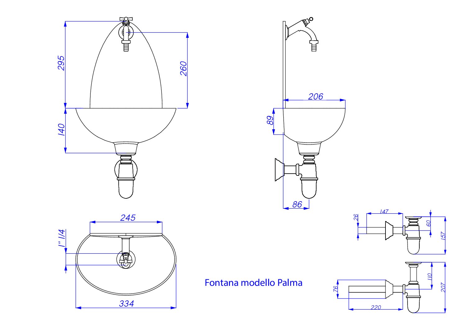 Fontana a muro Palma con rubinetto 303/B e sifone