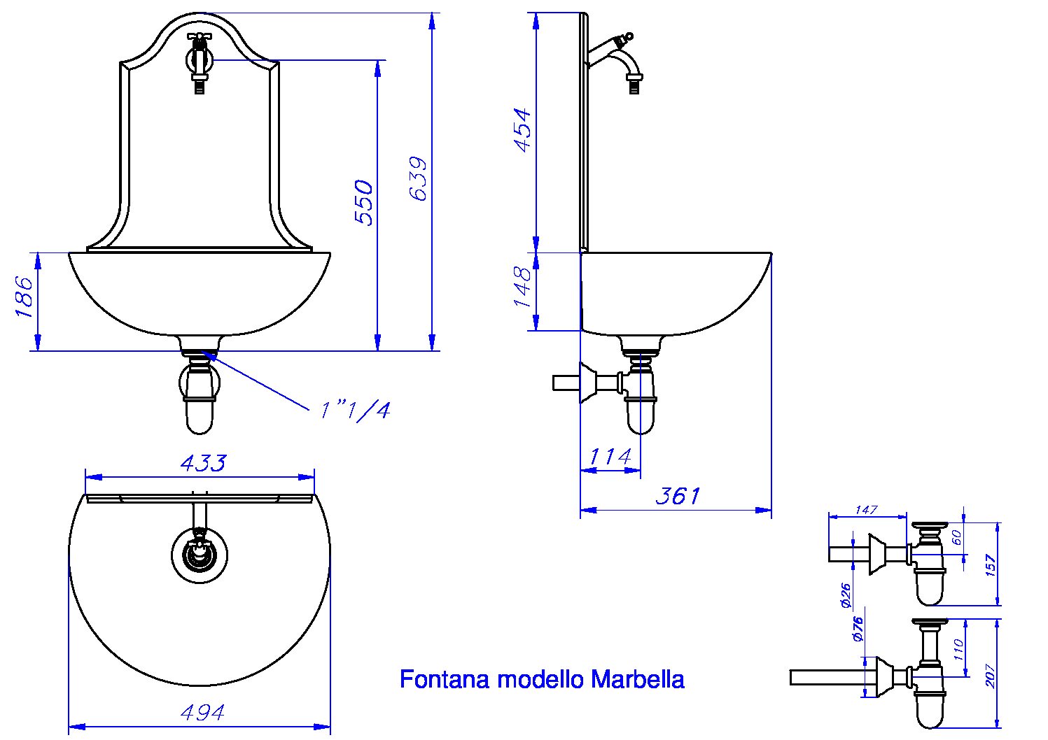 Fontana a muro Marbella con rubinetto 303/C e sifone