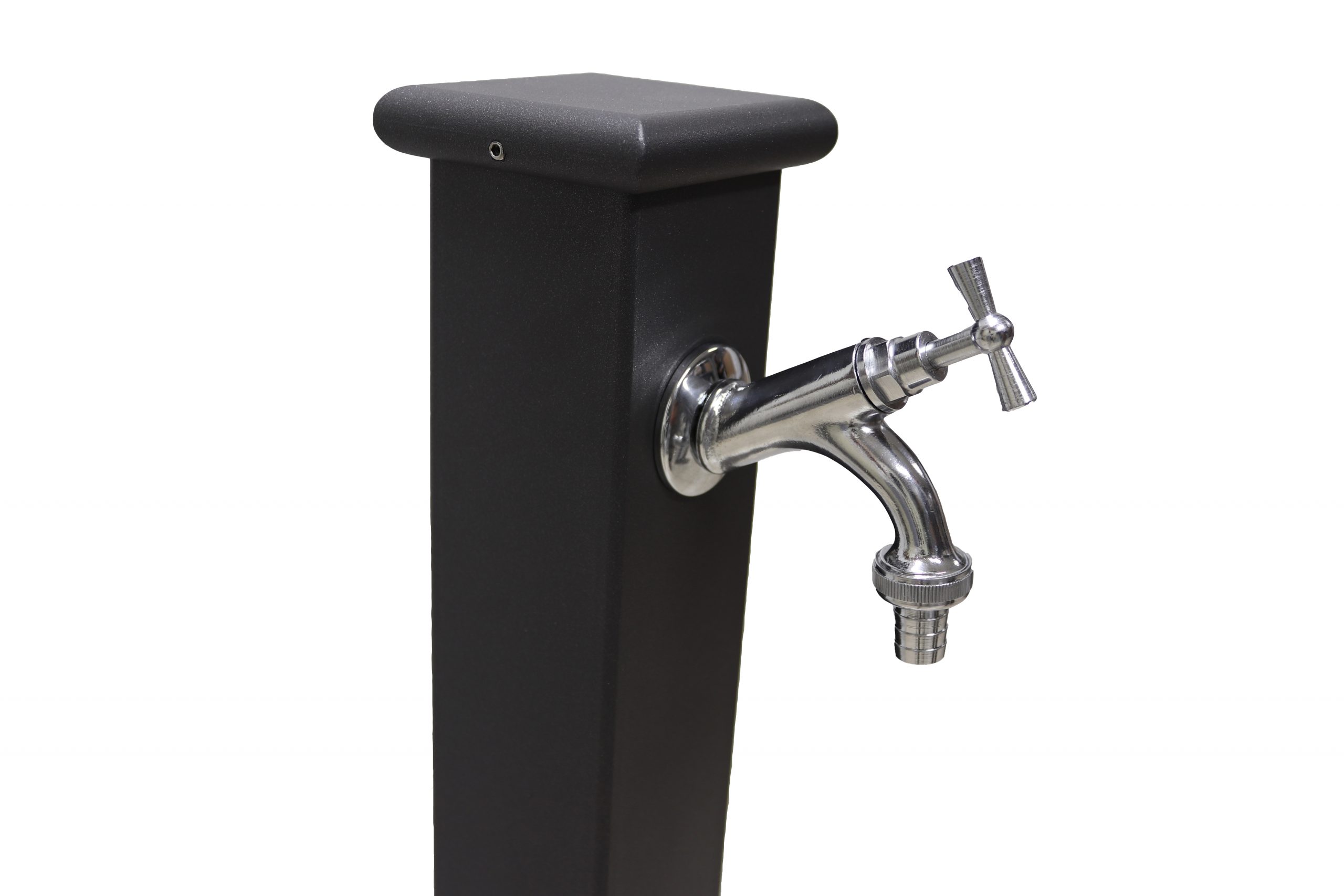 Fontana a colonna mod. Olimpia in acciaio zincato e verniciato a polvere epossidica antracite, con rubinetto cod. 303 in ottone cromato.