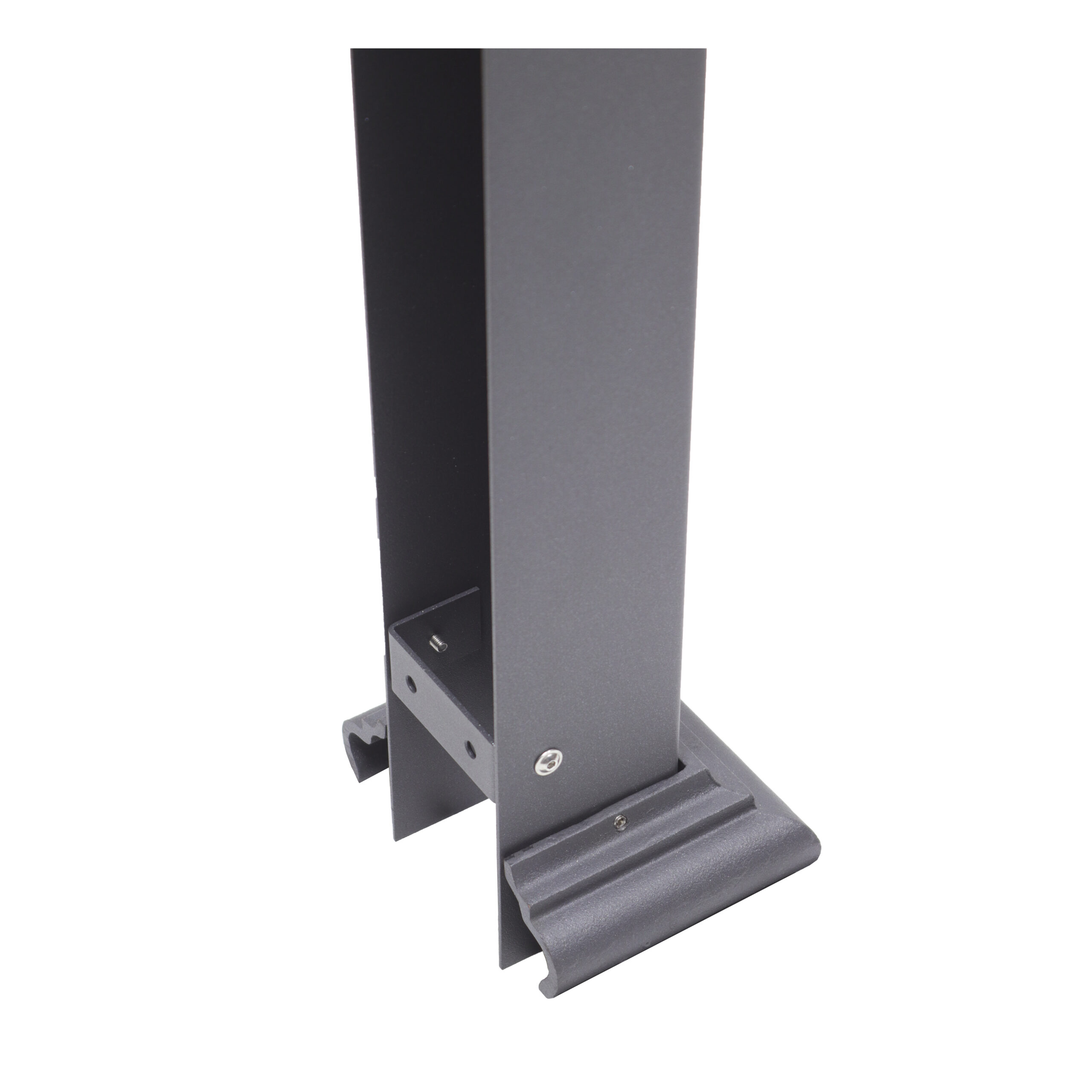 Fontana a colonna mod. Sparta realizzata in acciaio zincato e verniciato a polvere epossidica color grigio ghisa, con rubinetto cod. 303 in ottone lucido completa di base e portatubo.
