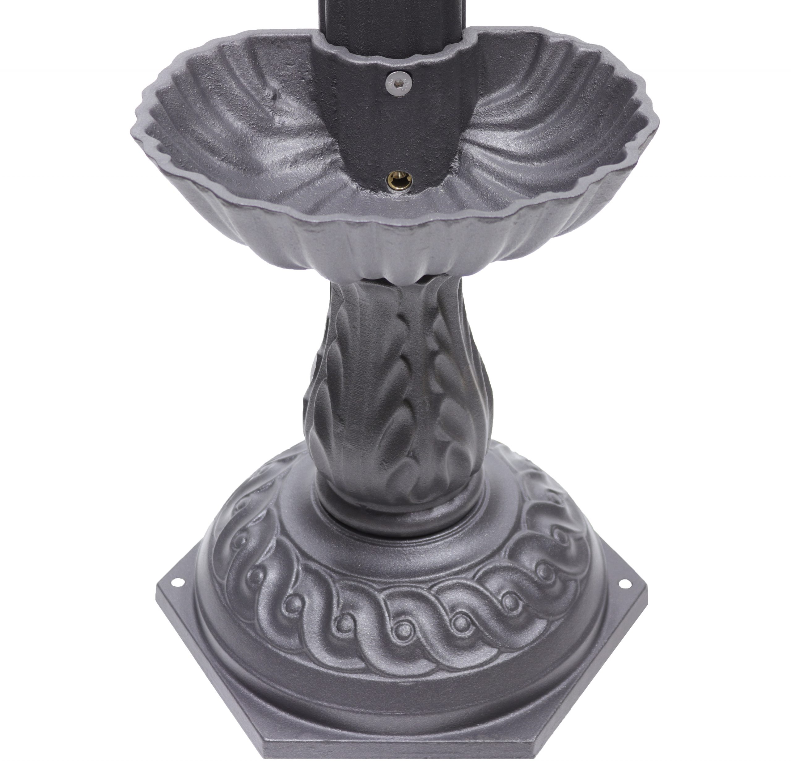 Il fissaggio a terra è mediante due semplici tasselli nei fori presenti nella base della fontana.
