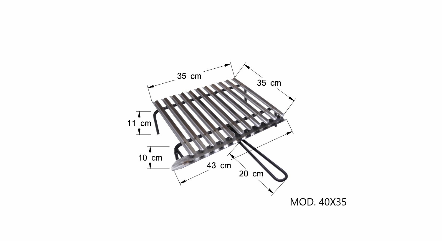 Graticola in acciaio INOX AISI 430 con struttura in acciaio verniciato nero.