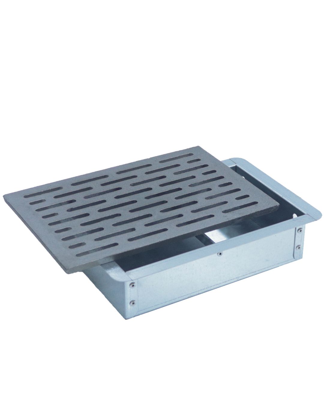 KIT GRIGLIA IN GHISA 20x30x1+ CASSETTO RACCOGLI CENERE PER CAMINO REALIZZATO IN LAMIERA ZINCATA
