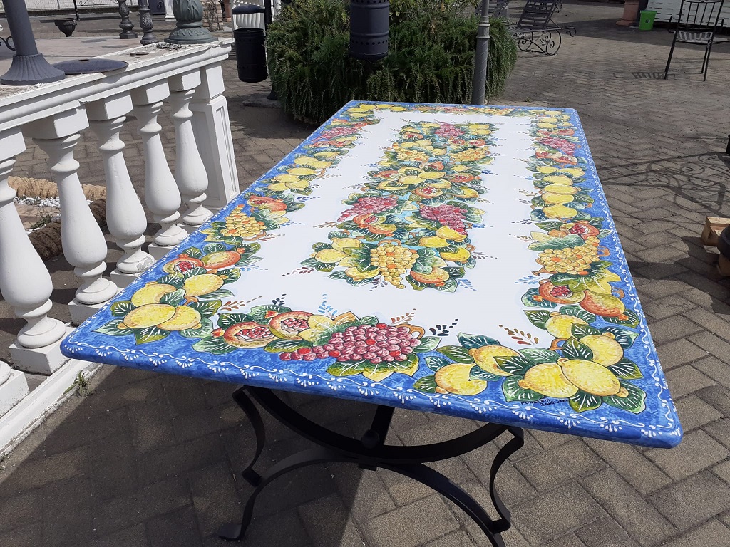 La lastra così ottenuta viene poi smaltata con particolari smalti, “dipinta a mano” e cotta a circa 1000°C. (processo chiamato ceramizzazione)