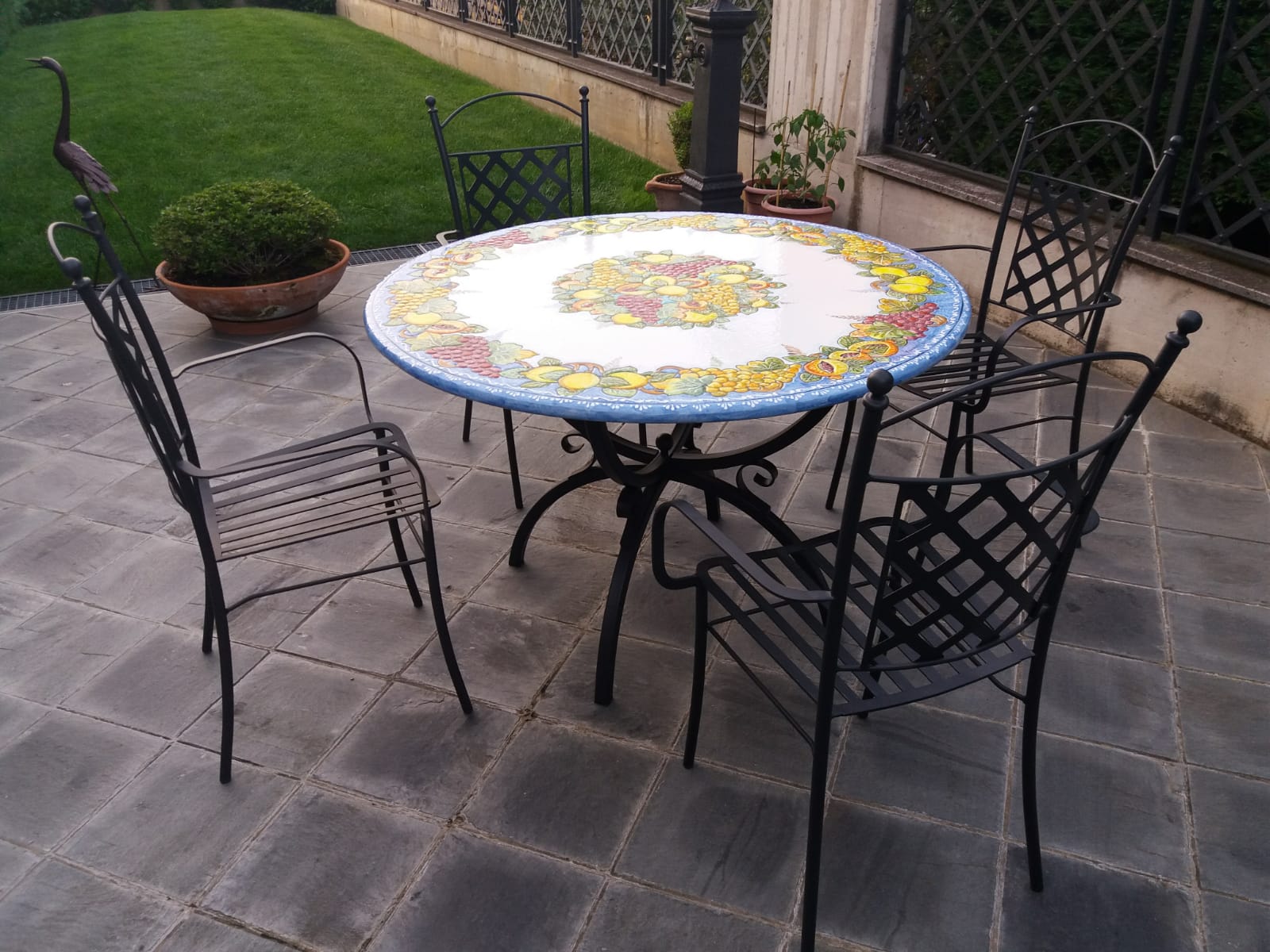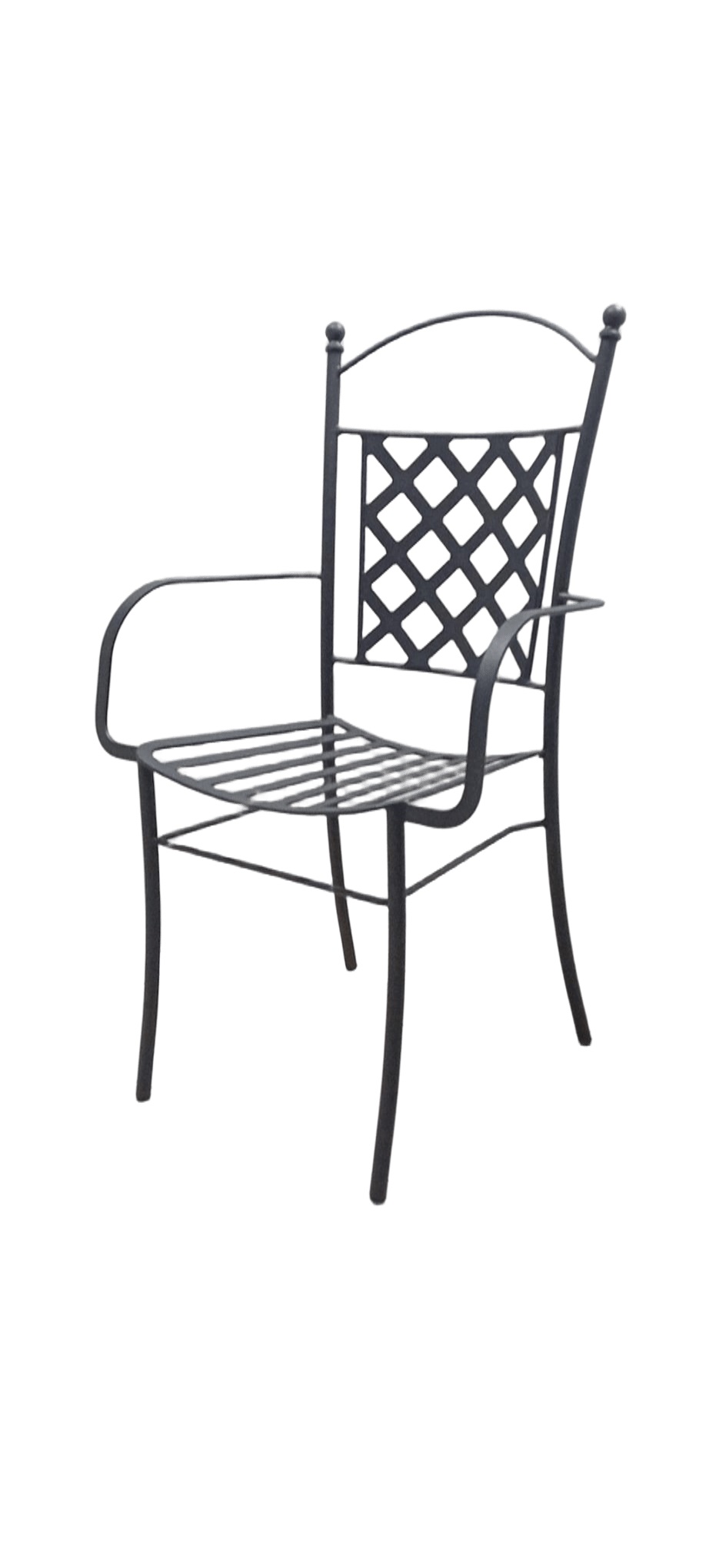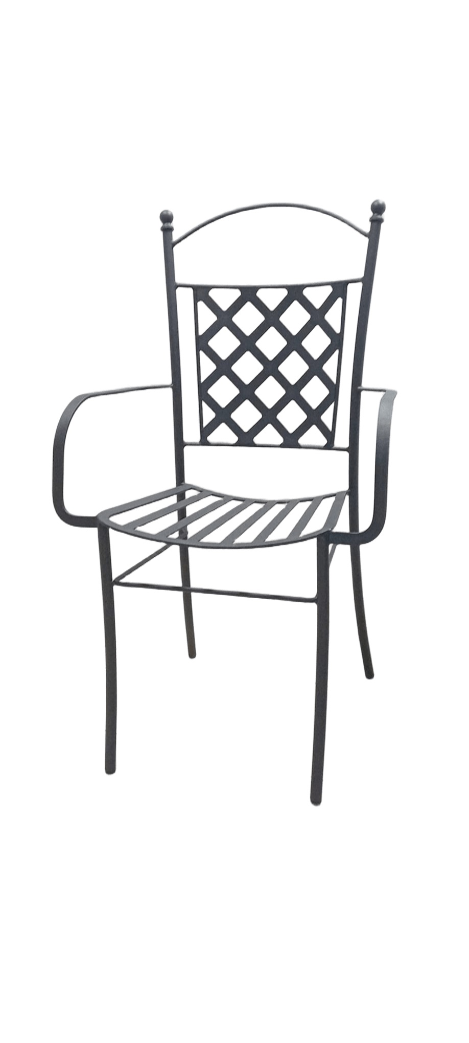 Poltrona in ferro battuto, impilabile, con braccioli, mod. Rombi