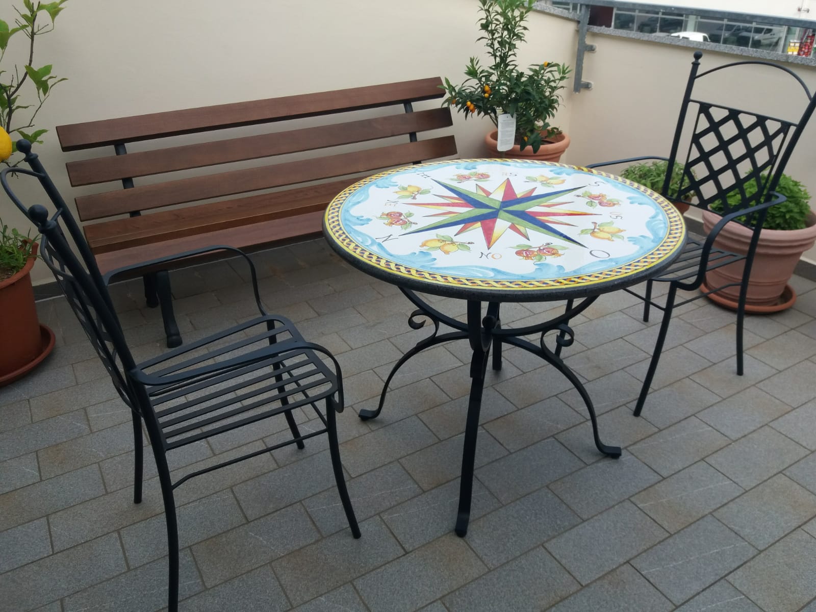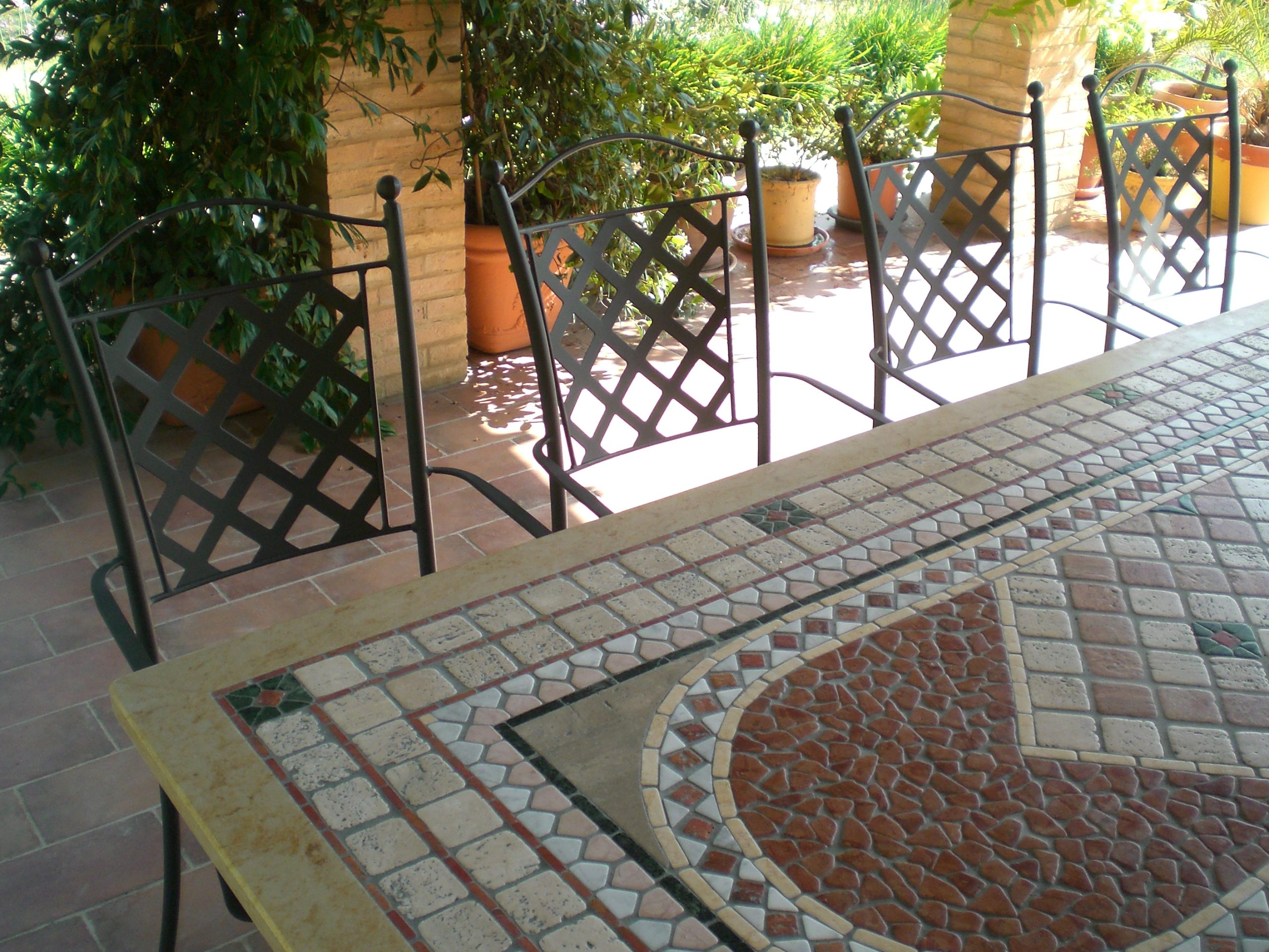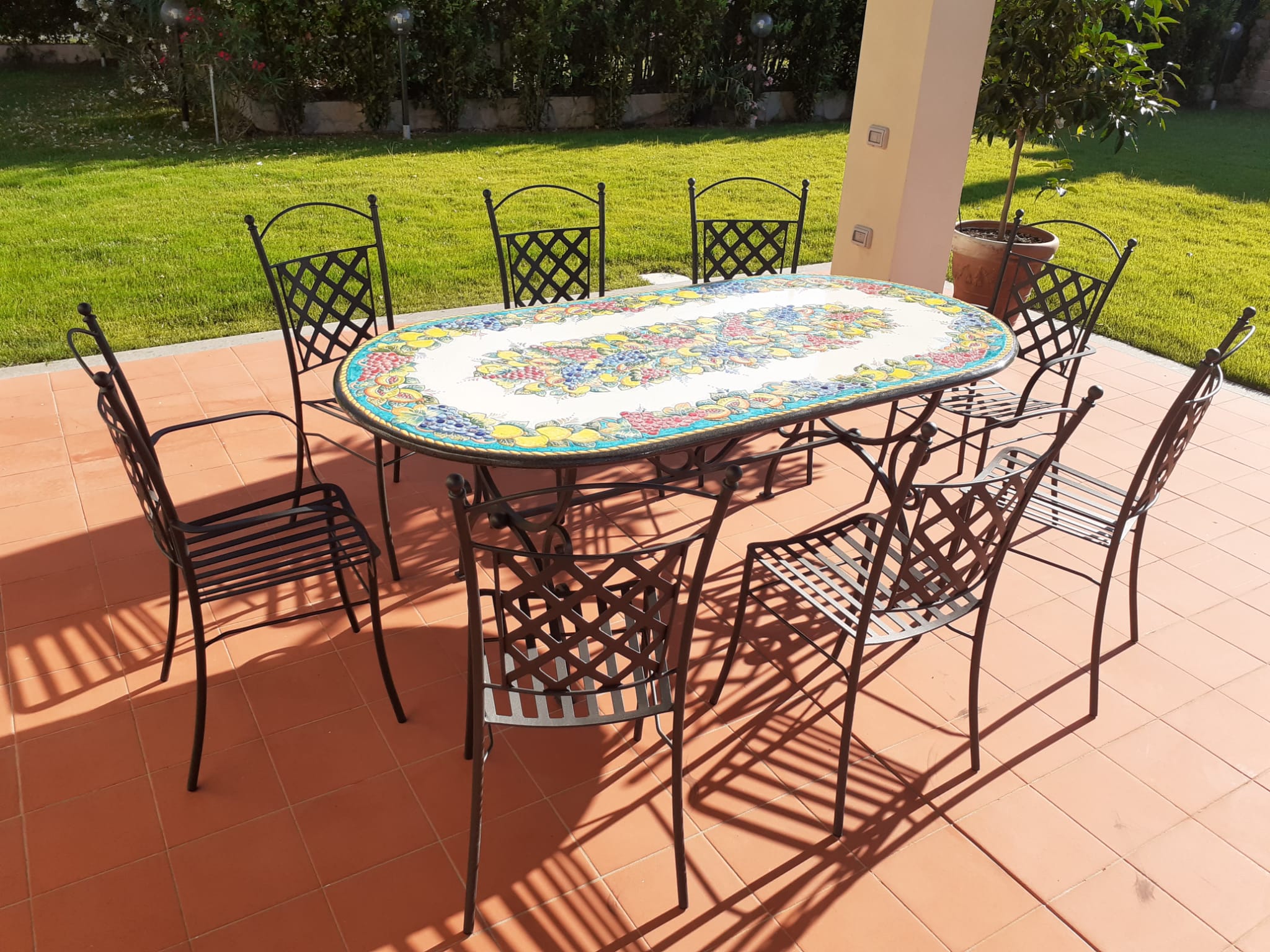 Poltrona in ferro battuto, impilabile, con braccioli, mod. Rombi