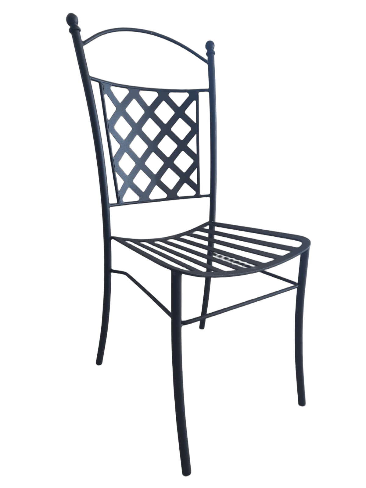Sedia  in ferro battuto, impilabile, zincata e verniciata antracite.