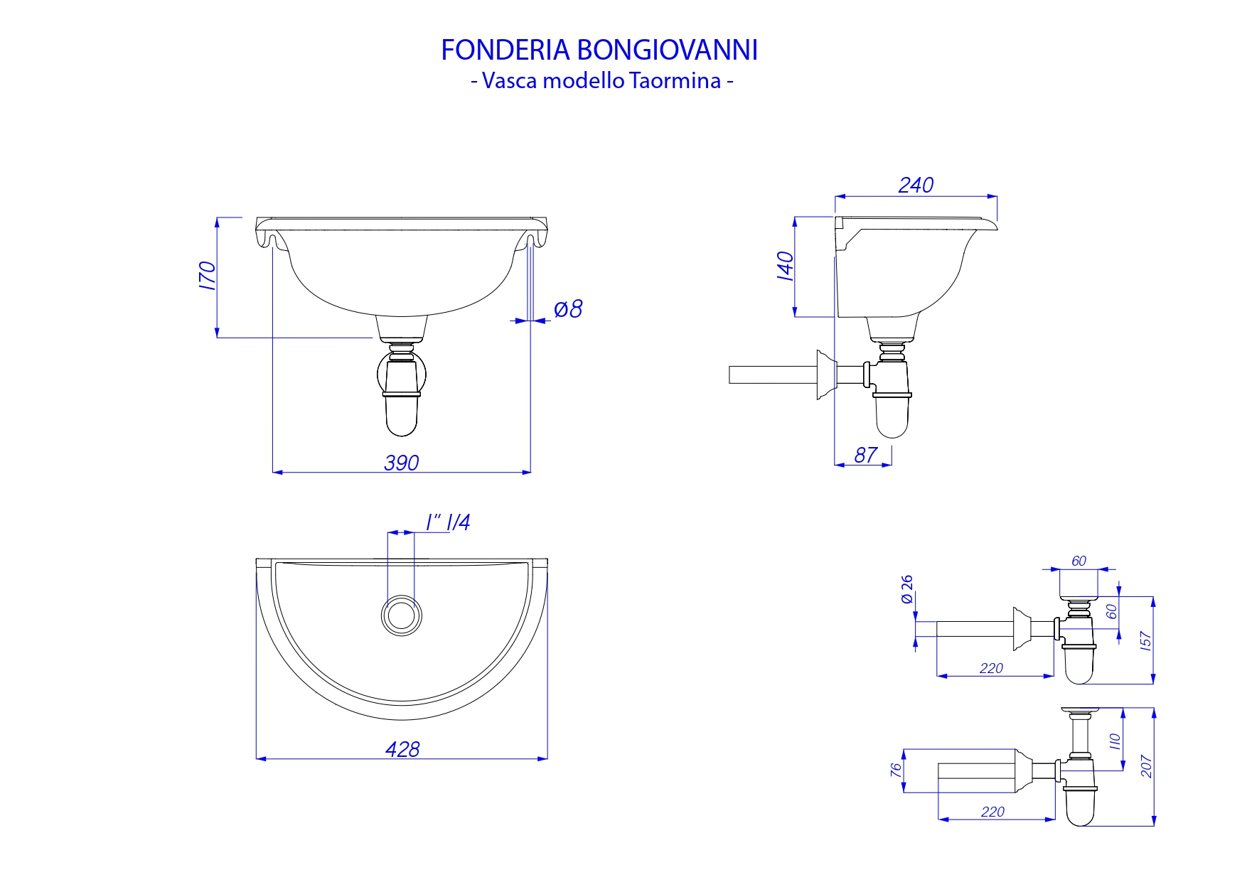 Vasca Taormina + sifone in ottone cromato