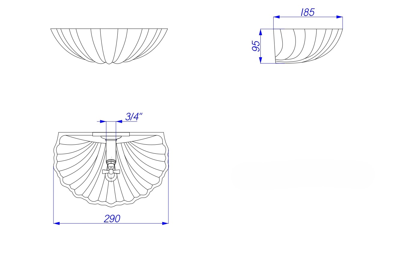 Larghezza massima 29 cm-Sporgenza 18,5 cm-Altezza 9,5 cm-Foro di scarico 3/4″ filettato a muro