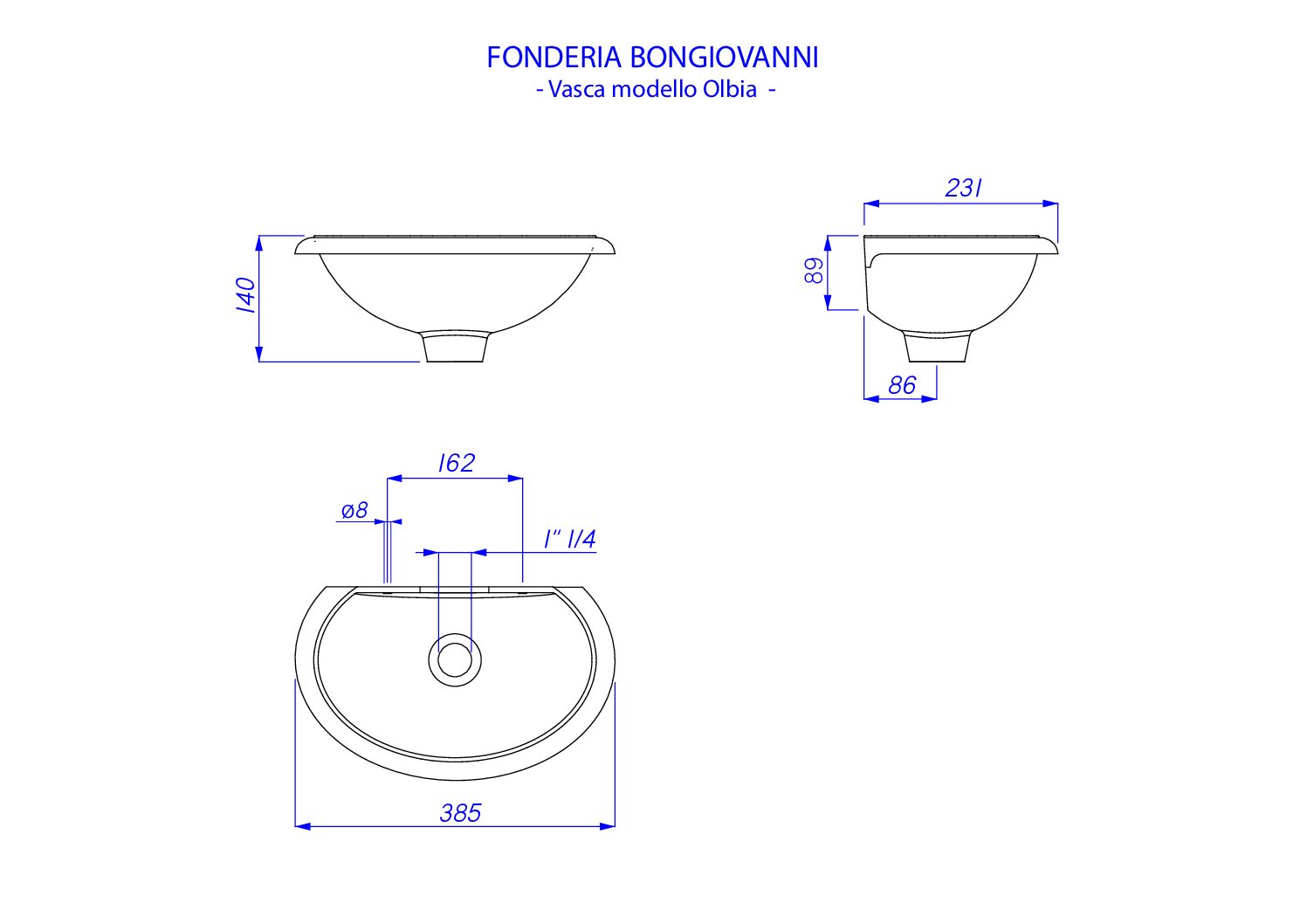 Vasca a muro mod. Olbia realizzata in fusione d’alluminio verniciata grigio ghisa