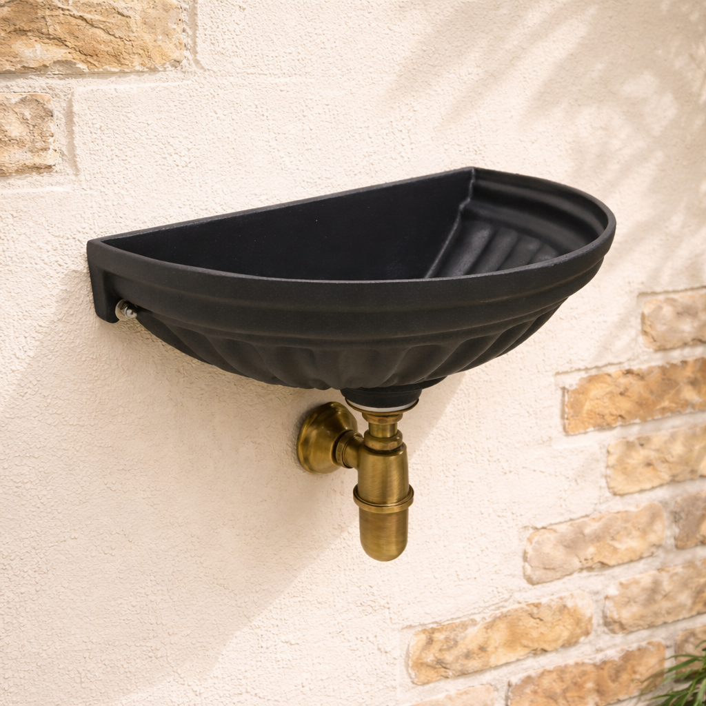 Vasca a muro Versilia con sifone in ottone brunito