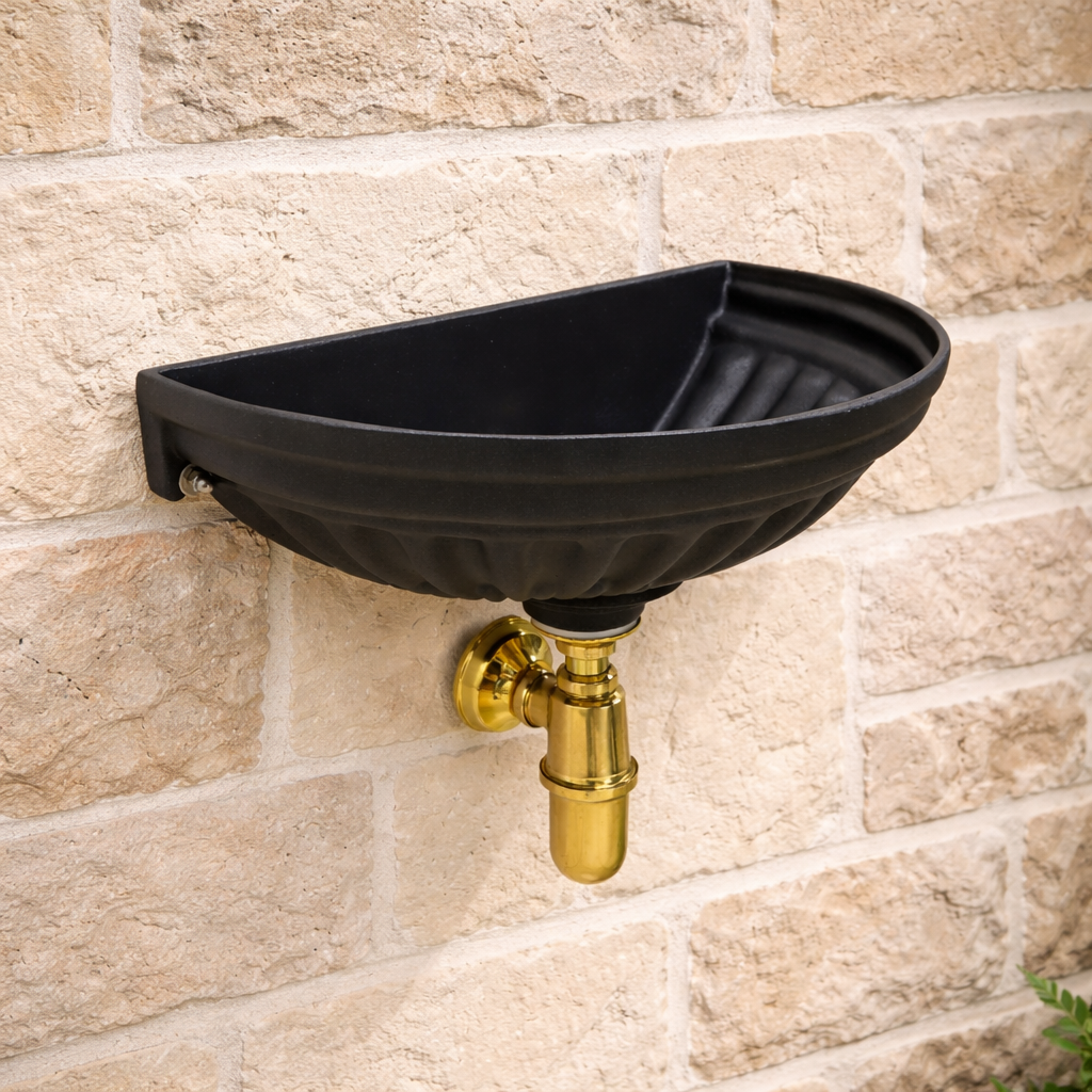 Vasca a muro mod. Versilia in fusione d’alluminio colore grigio ghisa completa di sifone con piletta in ottone lucido.