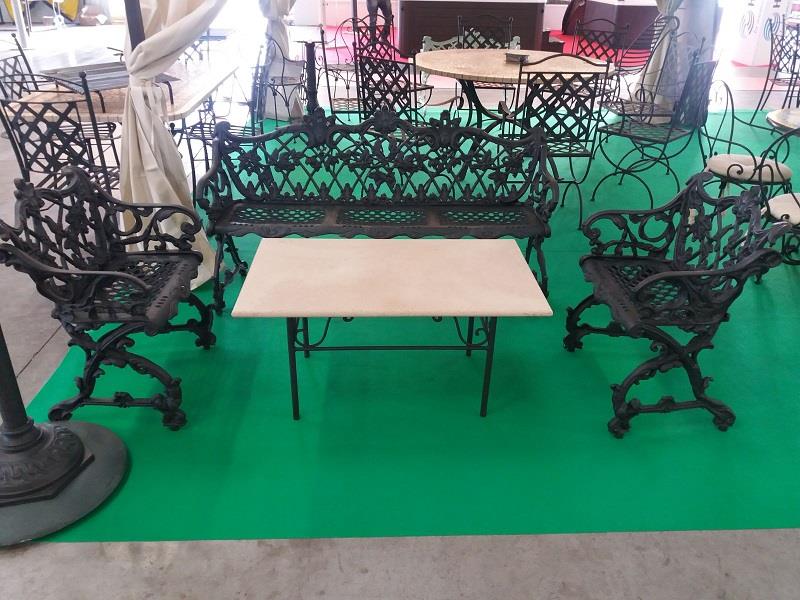 panchine e tavolo in ghisa per esterno